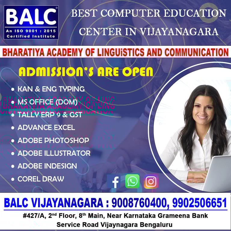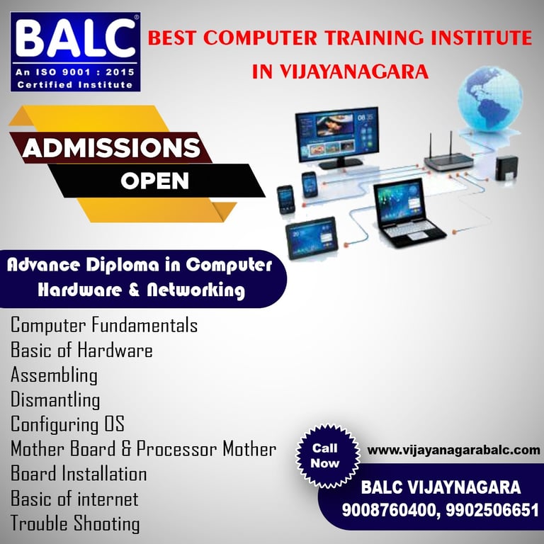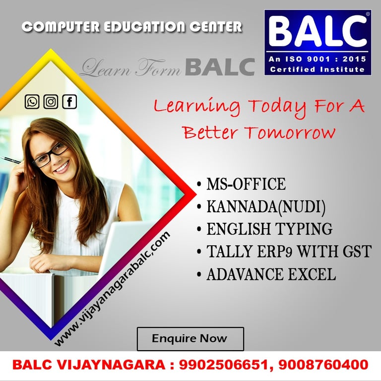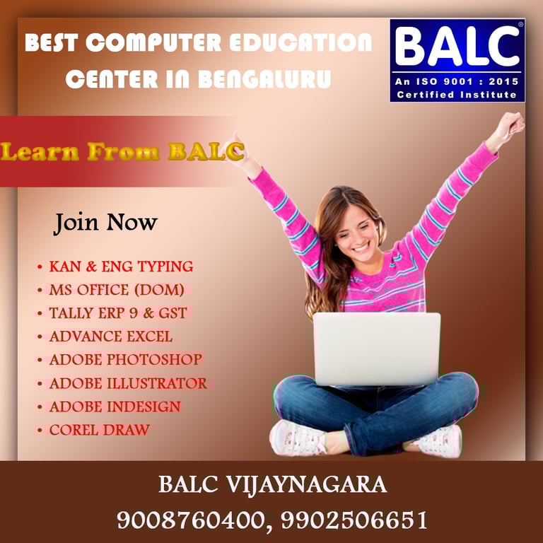 BALC Vijayanagara Offers diverse educational programs for ten years. we provide high quality Computer education with highly professional team with wide range of courses in all the streams. An Institution which provides excellent education to the students focusing on building their career from scratch.